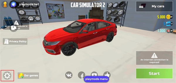 1、先打开汽车模拟器2的最新版本,接着点击界面左下角的设置按钮;