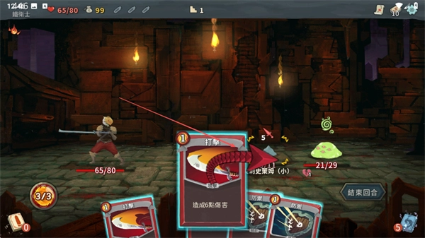 3、再次打出钉拳卡牌,对第二个敌方单位发起攻击,以此削减它的血量。