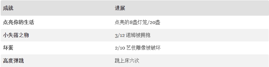 提示:游戏里能找到13个诺姆。把这13个都拥抱一遍,就能解锁“小失物”成就啦。