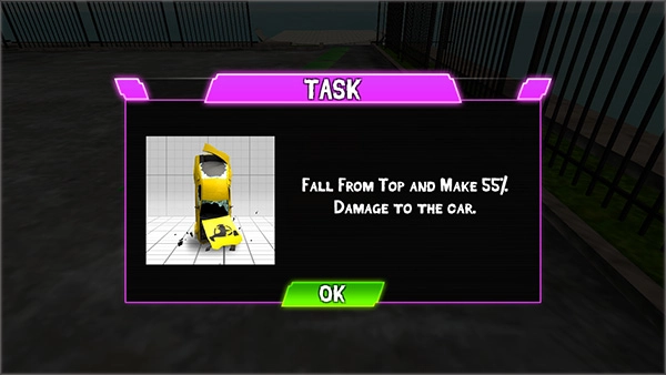 进入游戏后,当前关卡的任务便会显示出来,你需要把车子损坏到任务指定的目标程度。