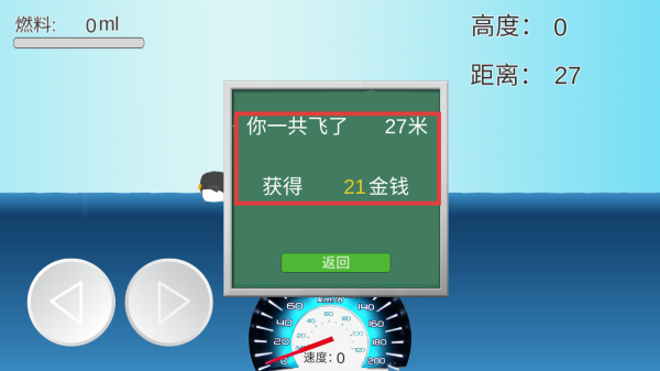3、飞行结束后查看【你一共飞了27米】【获得21金钱】,积累金钱用于后续能力提升。