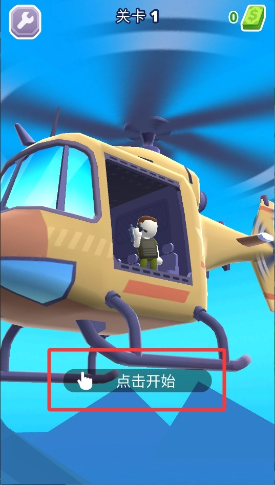 启动游戏后,直接点击初始界面的“开始”选项;进入战斗场景后,通过滑动屏幕调整准星方向,以此锁定巨兽的位置。
