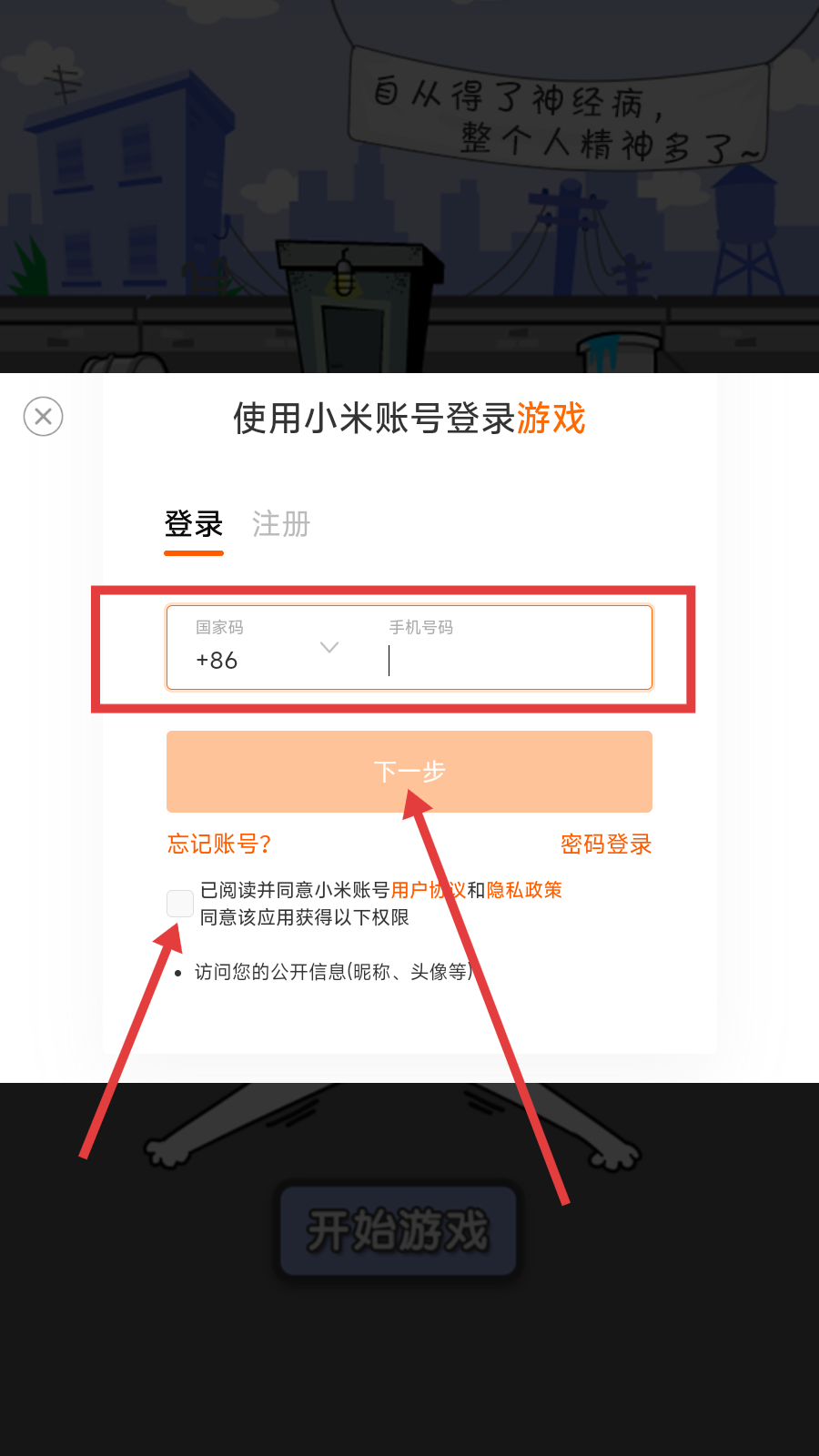 2、输入手机号码,勾选同意用户协议,点击【下一步】,获取验证码。