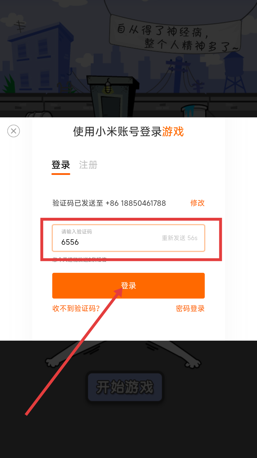 3、输入验证码,点击【登录】,即可开始游戏。