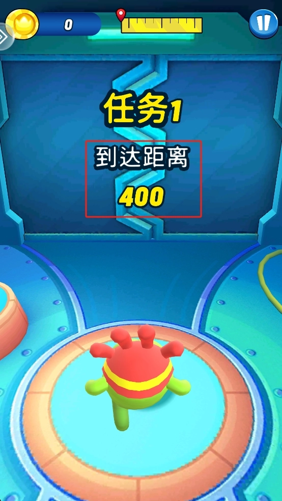 进入作品后,我们操控绿色小怪物向前移动,同时紧盯上方的任务栏,清楚地知道需要达成到达400距离的目标。