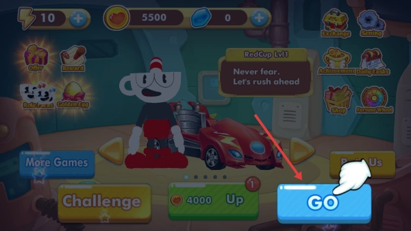 选择RedCup赛车,点击【GO】按钮,花费5500金币,即可进入赛道。