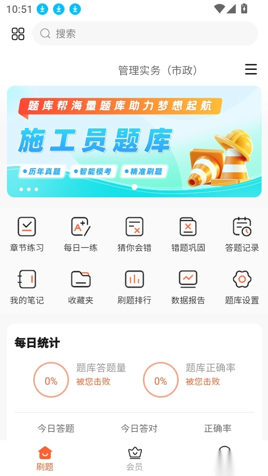 施工员题库帮是一款专为施工员考证学员打造的刷题工具,海量优质题库资源,覆盖各类题型与考试科目,助力用户巩固知识点;同时精准对接考试大纲,可开展针对性练习,全方位支撑备考需求。平台设有精选题库、章节精讲、历年真题、高频考点等功能模块,支持自由选择使用,并通过智能督导机制,全面辅助学习备考;此外,免费版本还提供最新学习资讯,方便用户查阅考试动态与备考技巧,提升备考效率。有需要的用户欢迎前来使用!