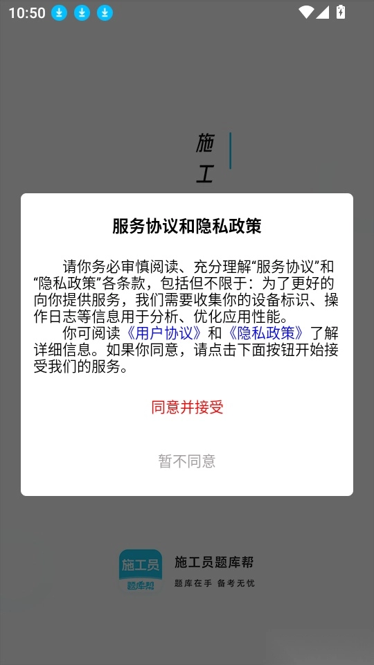 1、首先打开应用点击“同意并接受”按钮来进入中。