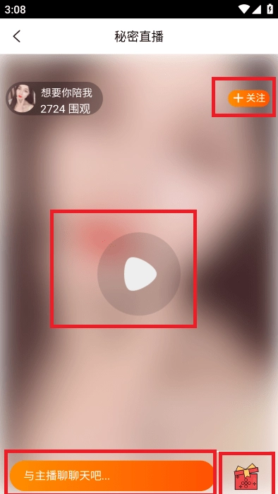 接着直接点击播放按钮,就可以观看我的直播啦,对感兴趣的内容可以关注,还能通过打字进行互动,也能赠送礼物。