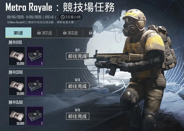 5月9日至5月11日期间,活动期间在地铁逃生【死亡竞技】玩法中获胜达到指定次数,就能领取Metro Cash和高伤害子弹自选礼包啦~