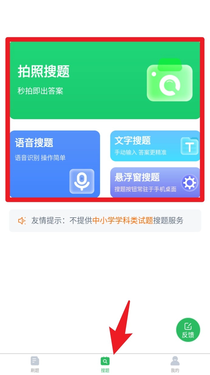 3. 点击底部的搜题功能,能够借助拍照、语音或者文字输入的方式来快速查找题目,并且支持悬浮窗搜索模式,让查题过程更加高效便捷。