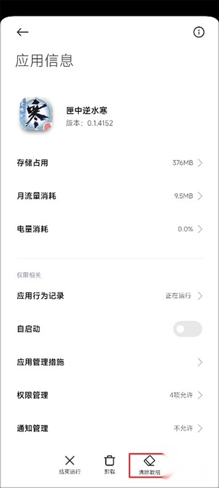 在应用详情页选择【清理数据】功能,一键清除缓存。