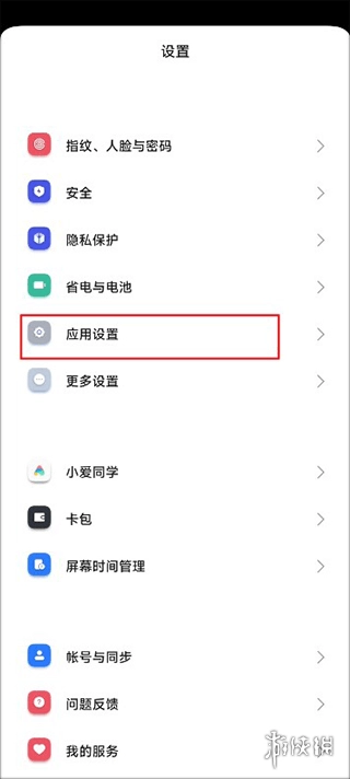 打开手机设置菜单,选择【应用设置】选项。