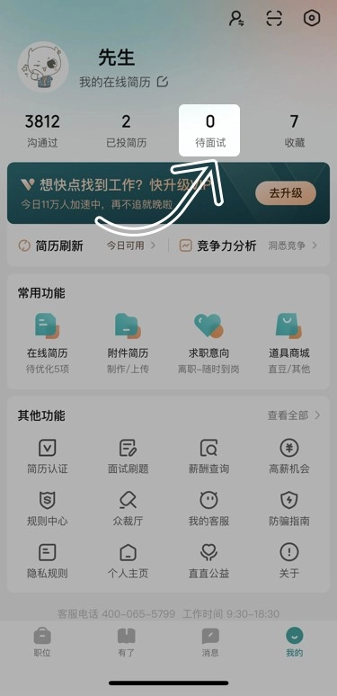 点击待面试,进入面试日程