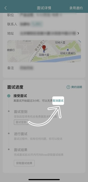 点击需要取消的面试,进入面试详情页