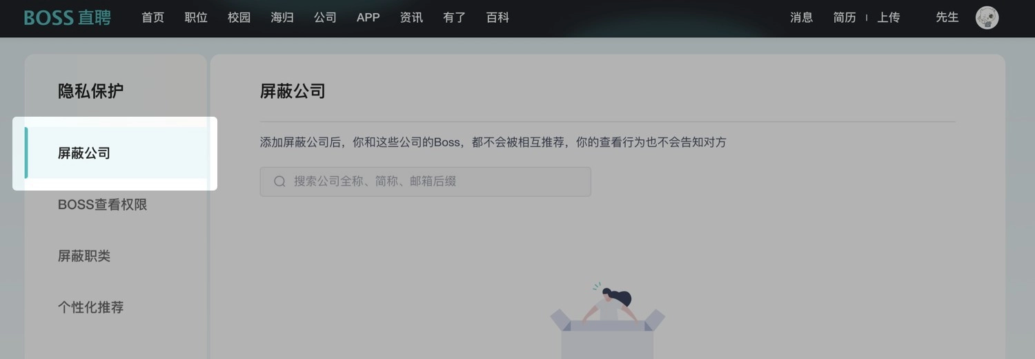 BOSS直聘怎么屏蔽公司