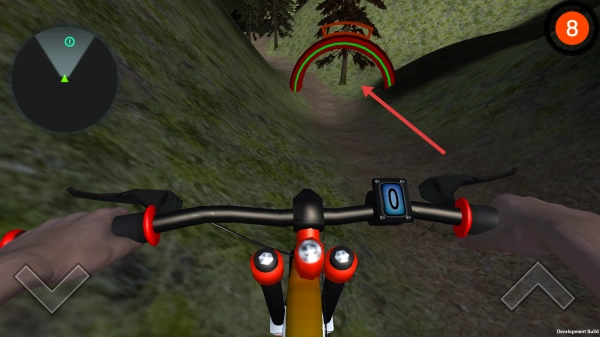 用左右方向键操控行进方向,沿着山间道路骑行,避开途中的岩石与树木,冲向彩色的圆环(也就是特技点),以此来积攒积分。