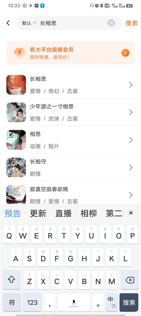 2、点击你想要的影视剧集,如长相思;