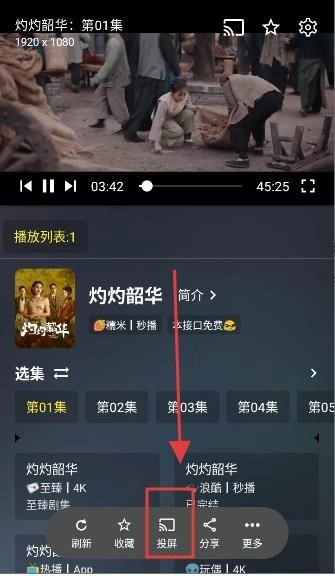 2、接着在影视播放小窗口中点击投屏