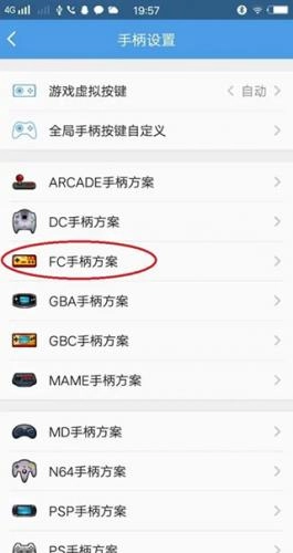 8、根据你常玩的游戏类型,每次启动游戏前,先进入手柄设置界面,找到对应游戏类型的选项,完成键位配置后返回,再进入游戏。本教程将以“FC手柄方案”为例进行设置演示。