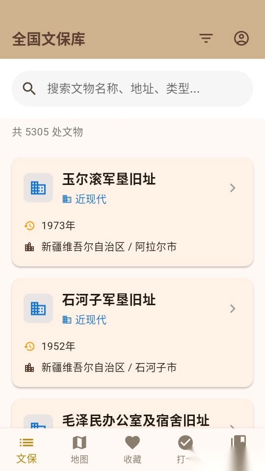 文保助手助力用户趣味探索温区,让大家能实时领略历史文化魅力,众多文化遗产都可即时探索,方便用户趣味打卡记录;同时,它能更好地实现多类型文物的筛选,便于用户记录专属的文物故事并妥善收藏,轻松构建个人专属的文化地图,便捷完成图鉴收集。