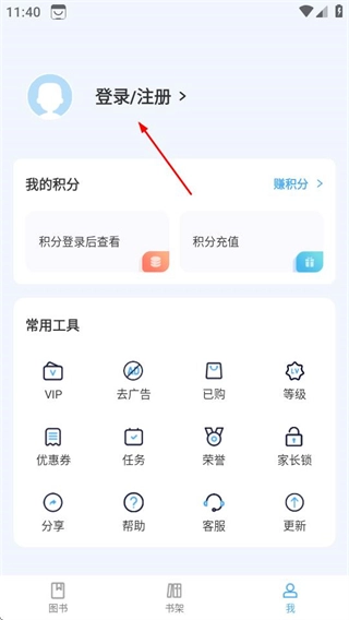 1、打开点读君APP,在首页找到右下角的“我”选项并点击,即可进入个人页面。