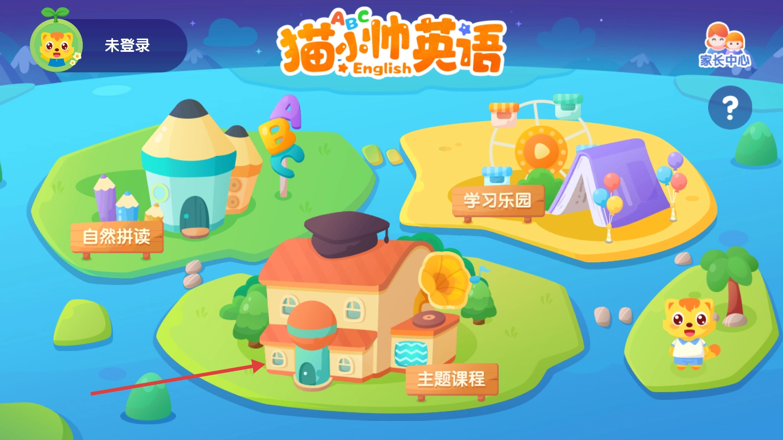 1、在【猫小帅英语】的主界面中,点击【主题课程】板块,就能进入到与课程相关的界面。