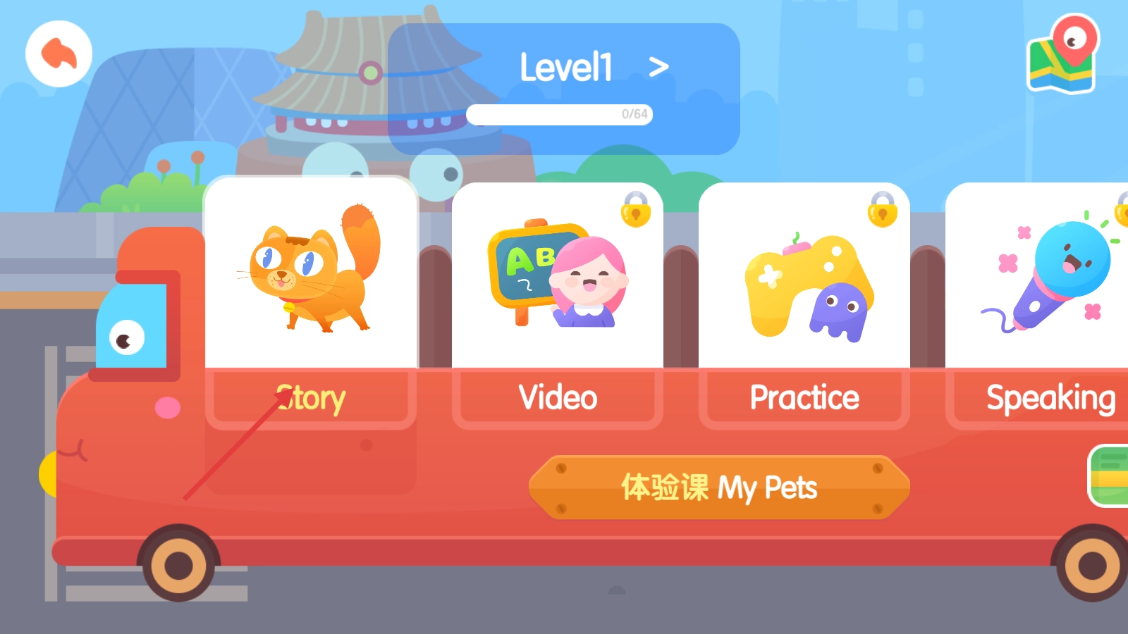2、进入课程界面后,点击【Story】选项,即可进入情景动画故事学习模块。