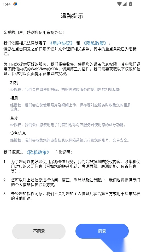 1.打开软件阅读“温馨提示”点击“同意”进入