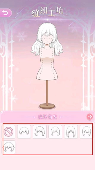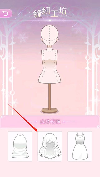 进入缝纫工坊可以选择衣服、发型、连衣裙模板;
