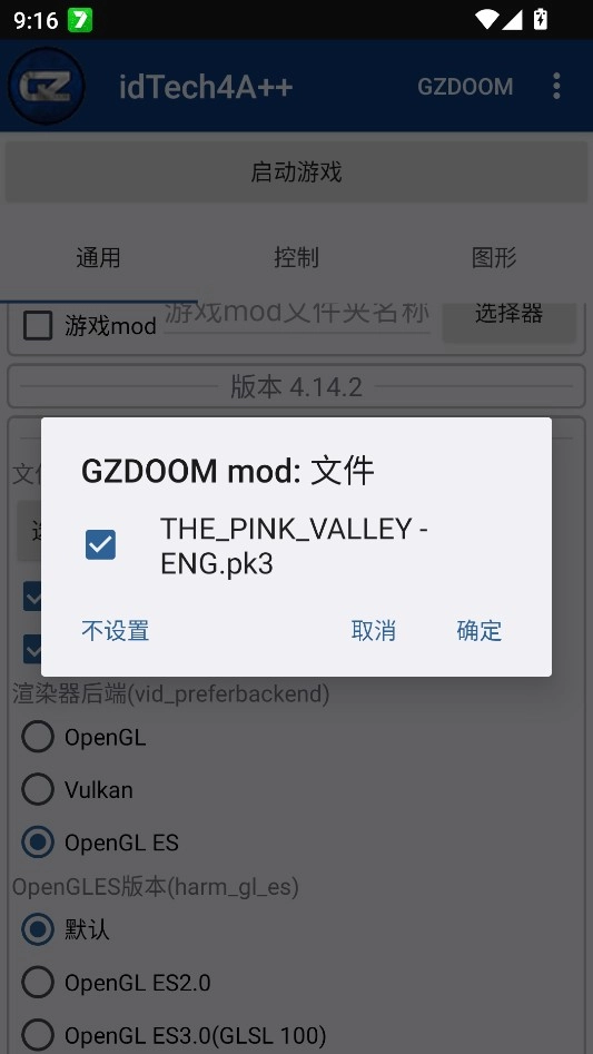 5、接下来点击“选择mod文件”,选中“THE_PINKVALLEY-ENG.pk3”文件后进行确认。