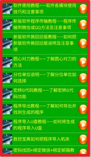 4、进入视频教程板块后,可点击对应的教程内容,了解程序传输、版本切换、圆心对刀、单位设置等相关操作。