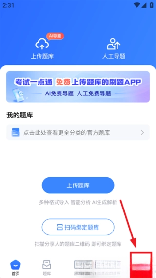 2.登录成功后,进入“题库管理”板块,可上传本地题库文件,也能选择系统推荐的题库。