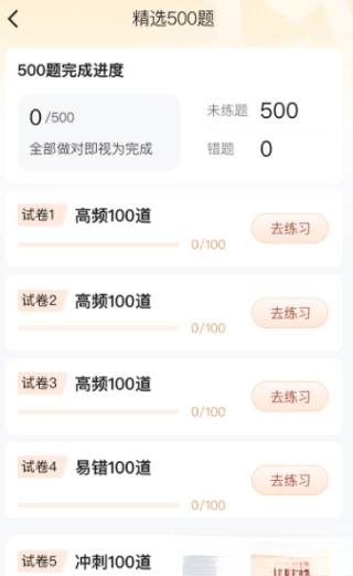 3.点击“开始刷题”,依据自己所处的学习阶段,挑选练习、错题或者模拟考试的模式。