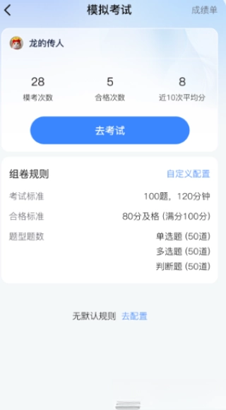 3.完成所有课程后,可通过参与模拟考试答题,检验对该课程知识的掌握程度。