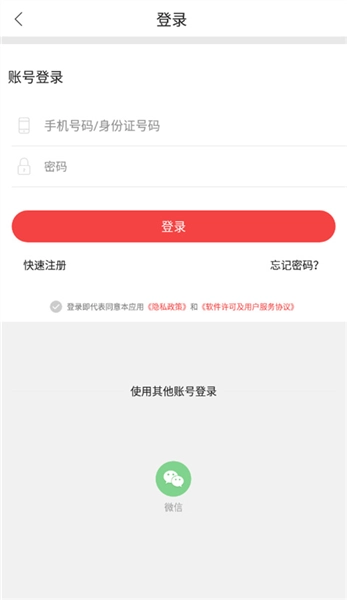 7、完成注册操作后,进入登录页面,输入注册时使用的手机号码与设置的密码进行登录。