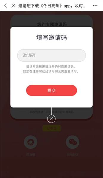 3、在输入框中填入邀请码,并点击提交;