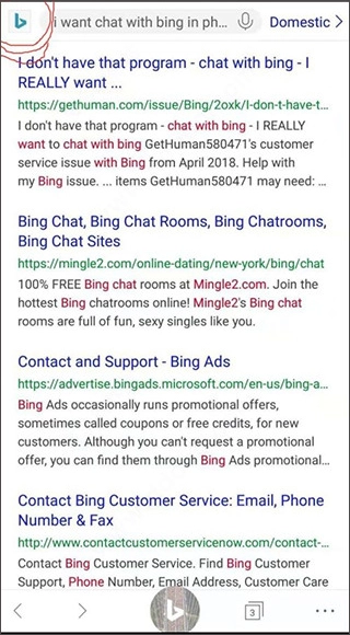 2、接着在搜索框中输入“I want chat with bing in phone”,需要注意的是,在手机上输入其他文字无法唤出AI对话机器人,仅能开展简单的搜索操作。