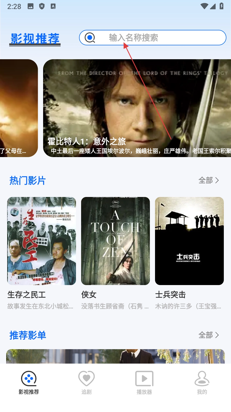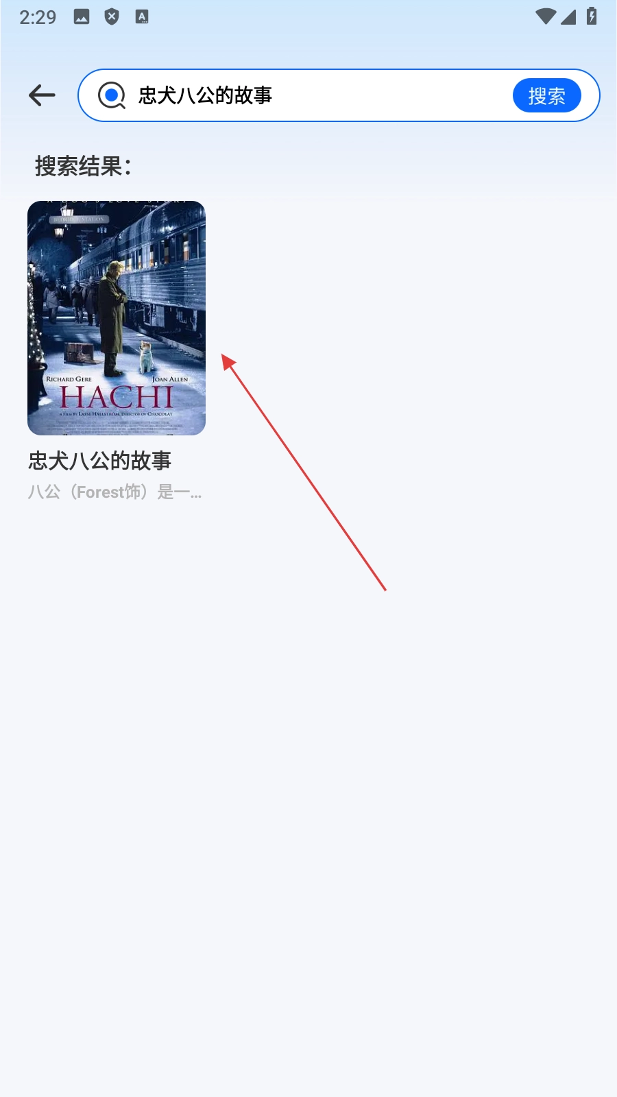 2、在搜索页面输入影片名称后,点击搜索按钮,即可得到对应的搜索结果。