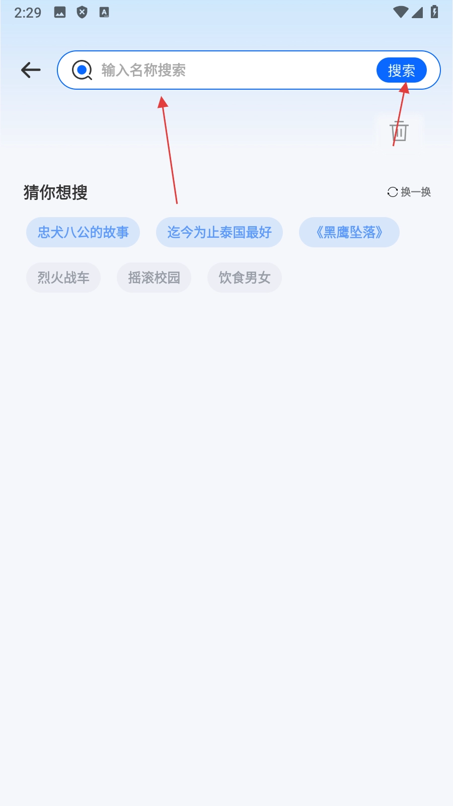 1、点击【顶部搜索框】,进入搜索页面。