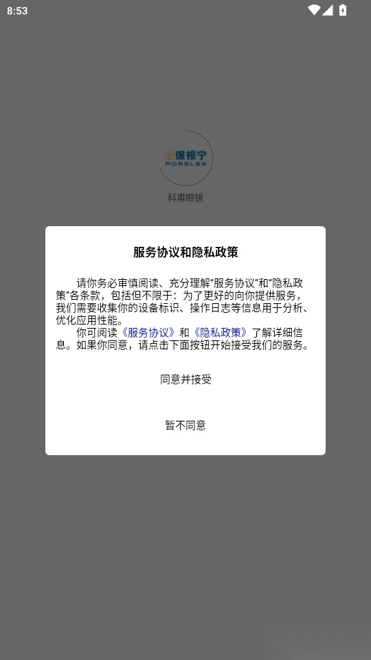 1. 启动软件后阅读“服务协议和隐私政策”,点击“同意并接受”按钮进入下一步