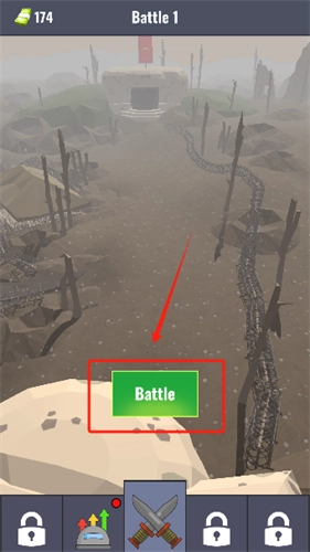 进入游戏后,玩家需点击画面下方中间位置的battle按钮来开启战斗。