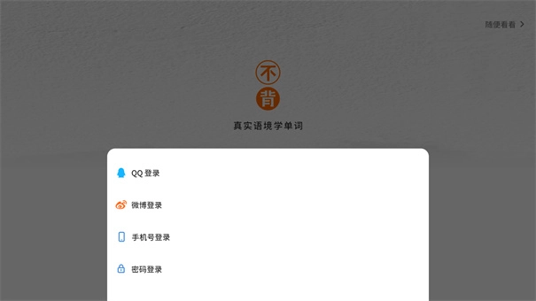 不背单词是一款主打真实语境学单词的软件,它为用户提供了源于生活的真实语料,从影视、演讲、新闻等真实场景中精选各类例句,内容贴近日常,能帮助用户更高效地记忆英语单词。该软件采用情景记忆法,通过科学算法将单词融入生活语境,让用户看到单词时就能联想到相关的场景和用法。