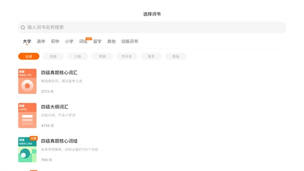 小学、初中、高中、四级、六级、考研、托福、雅思、专四、专八词书,你可以任意挑选。