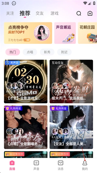 无论何时何地,都能与声音悦耳、才艺出众的小哥哥小姐姐直播互动,让动人的声音时刻陪伴着你。