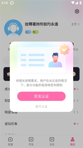 1、开通直播需要先进行【实名认证】。