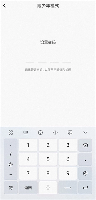 3、输入并验证【4位数密码】,即可开启青少年模式。