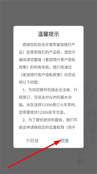 1、在温馨提示弹窗中,点击同意,进入登录页面。