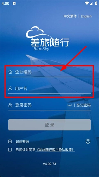 2、随后我们在登录页面,输入企业编码和用户名。