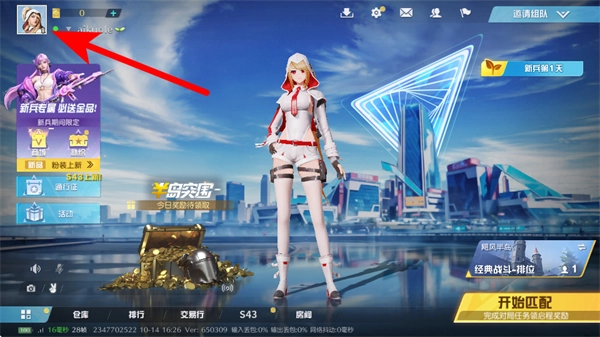 1、在游戏的主界面,需要点击左上角头像,进入个人页面。